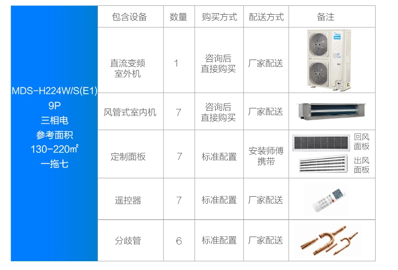 美的 一拖七變頻一級能效 多聯(lián)風(fēng)管機(jī) 9匹 家用中央空調(diào) MDS-H224W/S(E1)